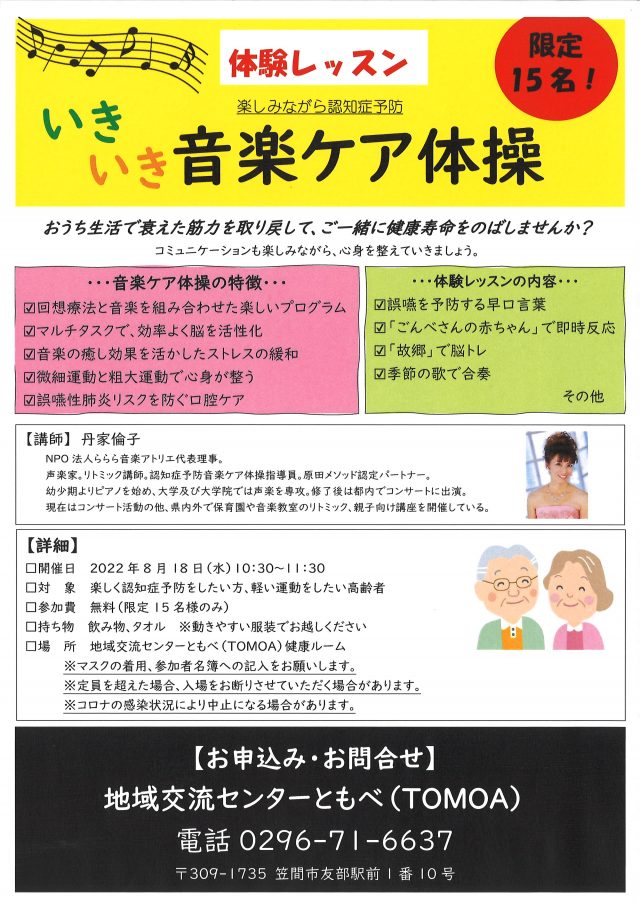 場 所:笠間市地域交流センターともべ「TOMOA」健康ルーム