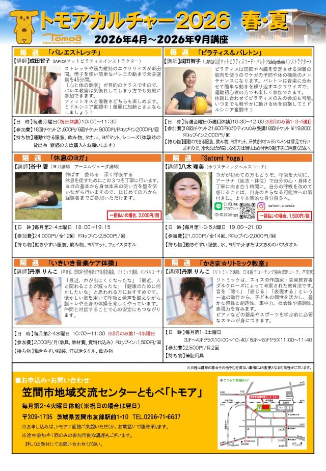 トモアカルチャー2026年4月~2026年9月講座の受付を開始しました。